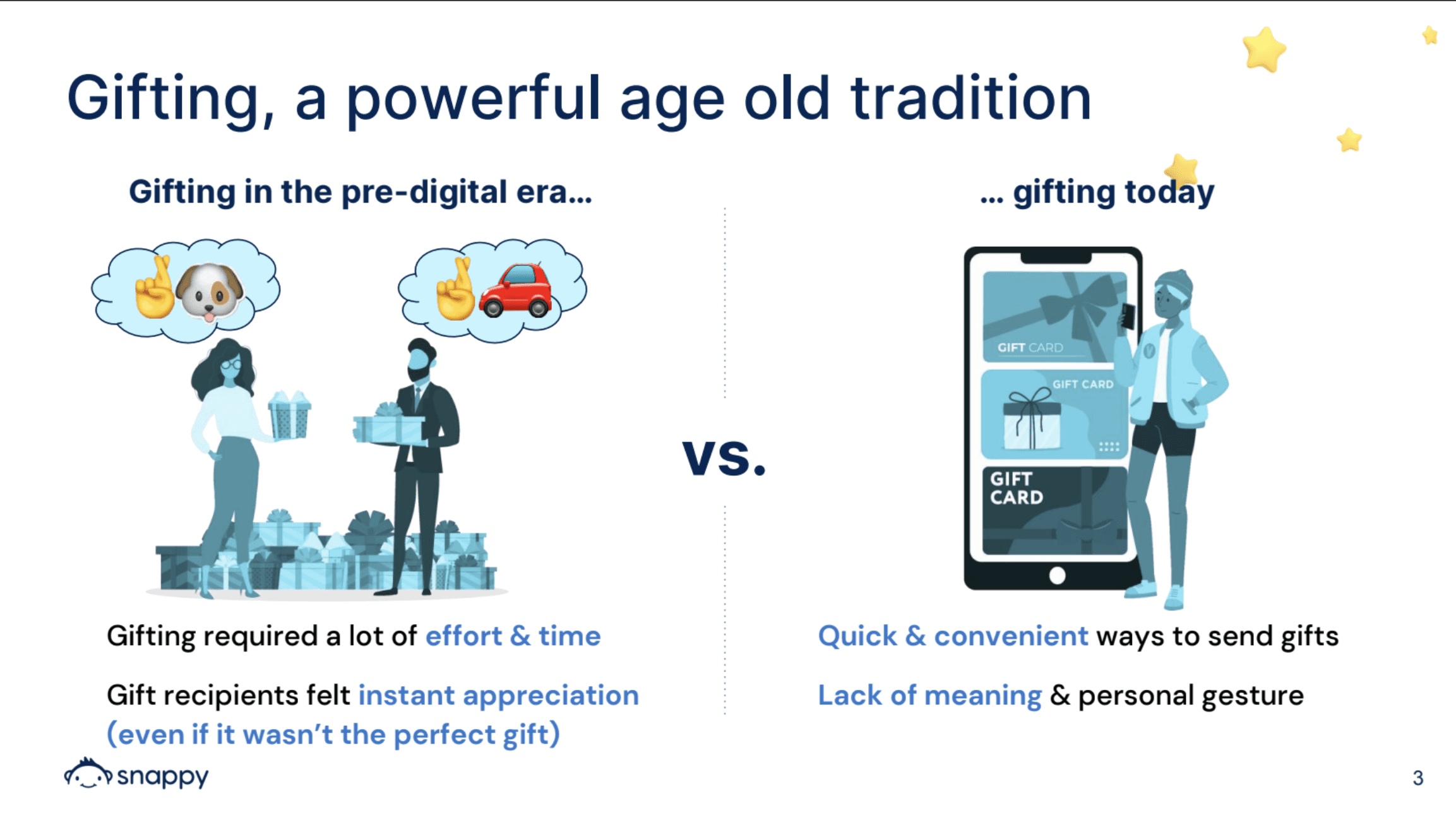 Customers often considered gifting as important, but not strategic. We helped Snappy craft a story that articulated why gifting is essential to retention, a clear outcome executives care about.