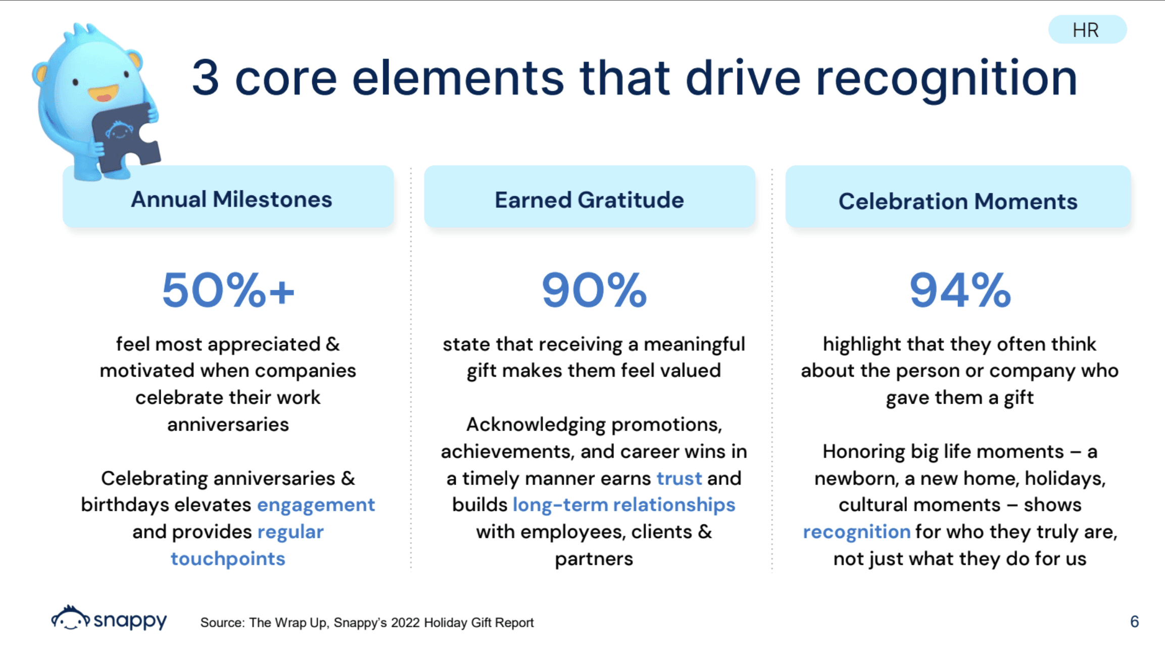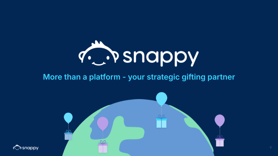 Meet Snappy, a strategic gifting and recognition platform that helps organizations drive employee engagement, retention, and culture at scale. Snappy enables HR teams to deliver meaningful, well-timed recognition by combining a curated global marketplace, automation, and guidance on when, what, and how to give.