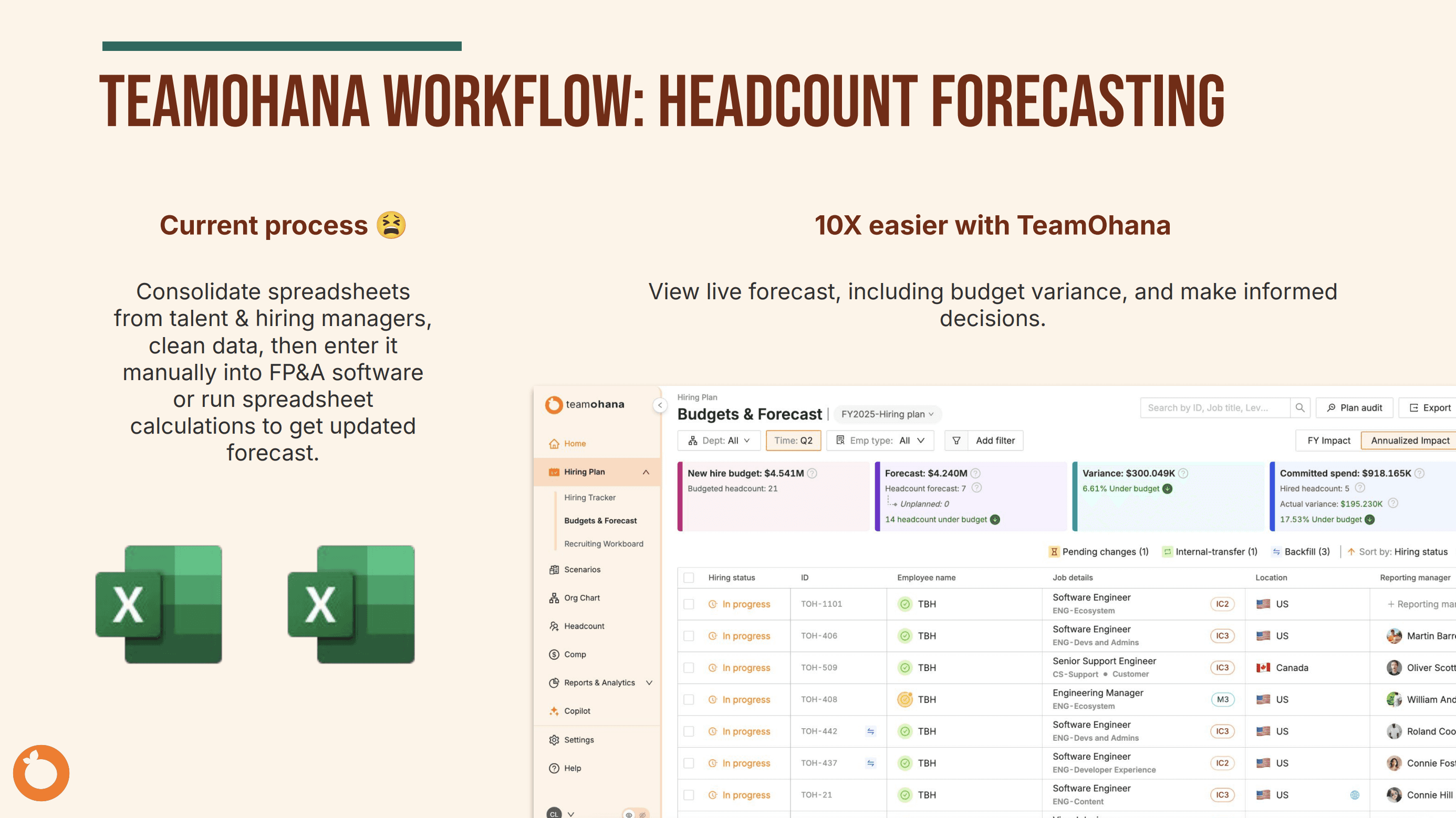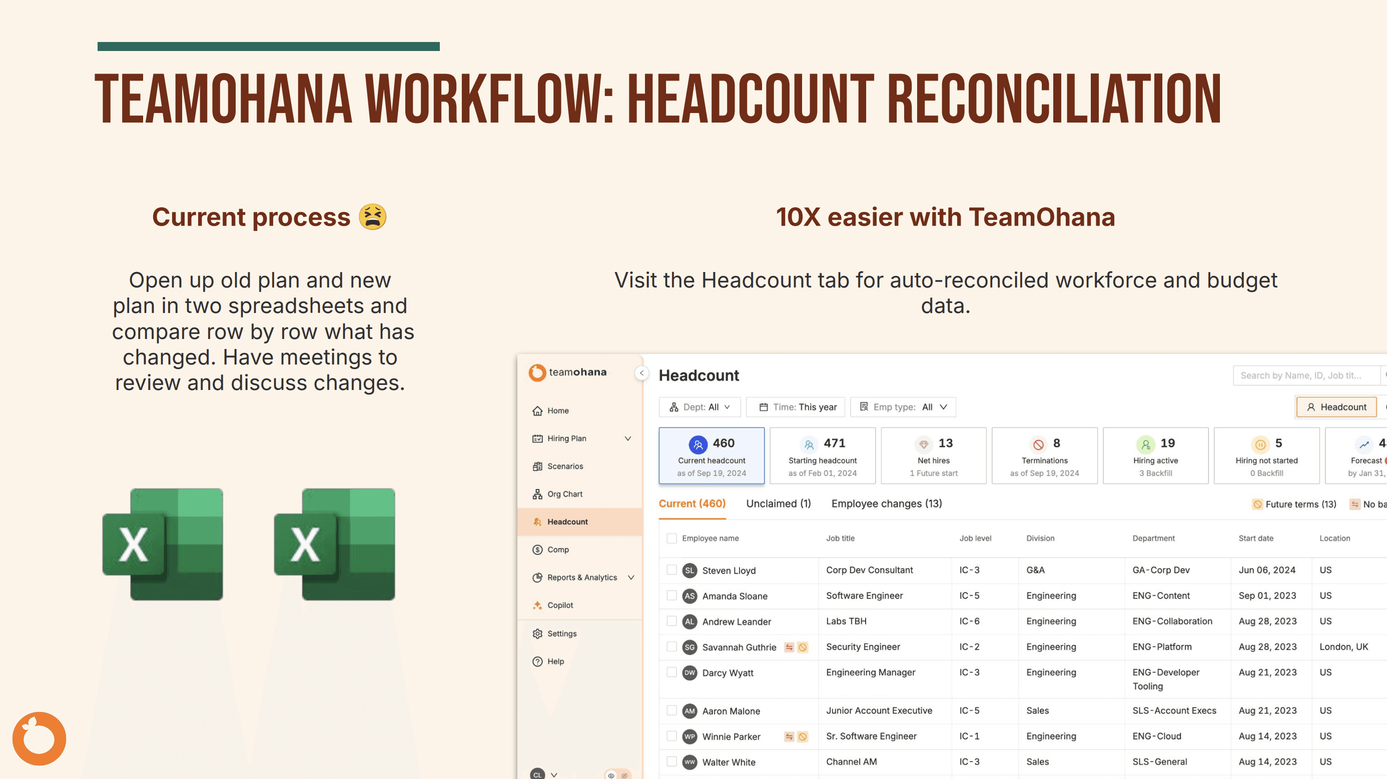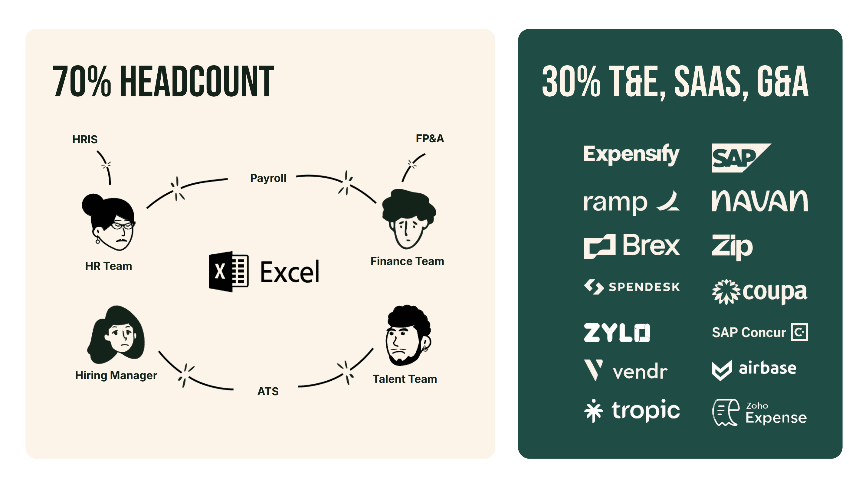 Through customer conversations, we uncovered that headcount management is highly complex yet still reliant on disconnected teams, manual processes, and spreadsheets. We positioned spreadsheets as the main “bogeyman” and labeled the overarching challenge "The Headcount Headache."